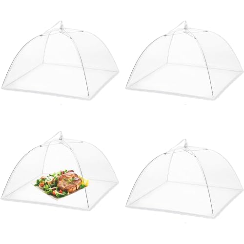 Flugluva, uppsättning av 4 täckskydd för mat, fällbart tårtskydd flugparaply matskydd, nätmaterial flughuva täckskydd, perfekt skydd för mat, frukt, BBQ