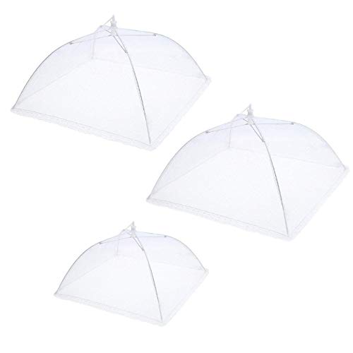 JZK 3 x vit popup-nätskärm matskydd nät återanvändbart och vikbart matnät tält för kök utomhus picknick BBQ för att hålla ute flugor, myggor och insekter, 2 storlekar (30 cm, 16 tum)
