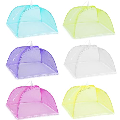 Pop-up nät matskydd nät 6-pack återanvändbart hopfällbart färgglatt paraply tält krypterat skärmnätskydd för utomhus camping fester picknick grillning håll ute flugor insekter myggor (43 x 45 cm)
