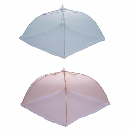 HK Online Stort överdrag för matkupolplatta, nyckelkedja fackla och citrus peeler – nät matskydd, sval mat säkert, håll insekter ute (2 x 35 cm med skalare och ficklampa)