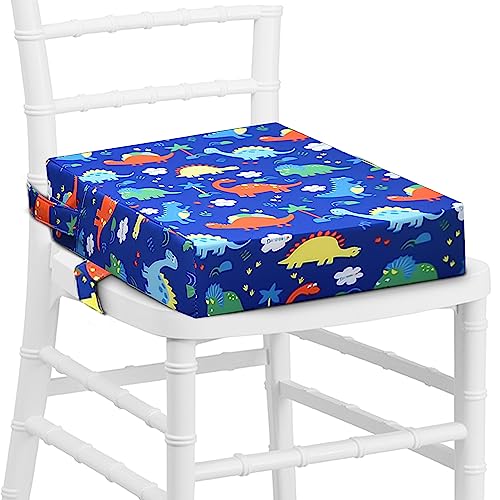 Boostersäte för matstol demonterbart tvättbart bord öka kudde med 2 justerbara remmar säkerhetsspänne halkfri botten rese matstolskuddar för barn (dinosaurieblå)