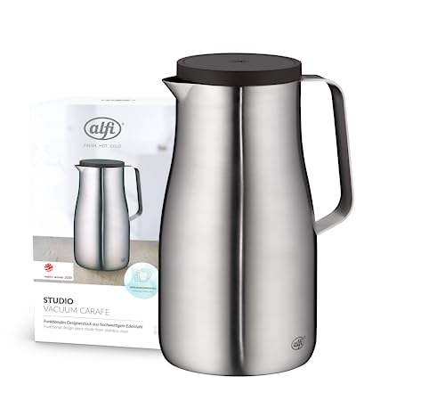 alfi Studio TT 1,0 l, rostfritt stål, termoskanna av dubbelväggigt rostfritt stål, matt, håller värmen i 12 timmar, kall, vridlås, stor öppning, termoskanna, diskmaskinssäker, BPA-fri