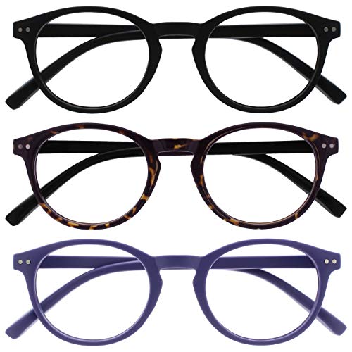 OPULIZE Zen läsglasögon 3-pack coola runda ramar fjädergångjärn repbeständiga glänsande rosa matt lila turkos män kvinnor RRR24-45Q +1,50