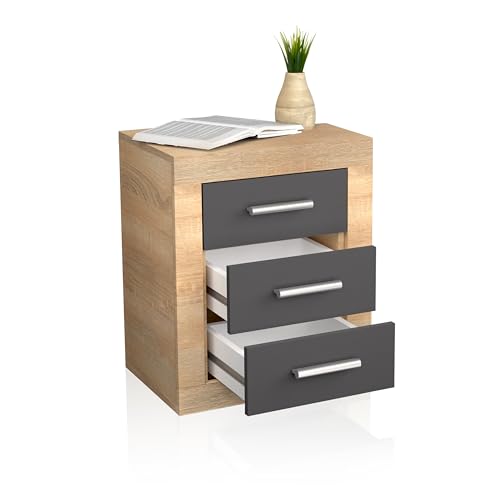 Nattbord Modell Lara, 3 Lådor, Färg: Cambrian grafit (svart), Sängbord Sovrum, Mått: 60 cm (Hög) x 50 cm (Bredd) x 34,6 cm (Botten).