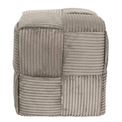 HOME DECO FACTORY, HD0540, Taupe flätad ribbad sittpuff, elegant och bekväm design, perfekt för vardagsrum eller sovrum, mångsidig och lättskött, mått 36x38x36 cm, taupe färg