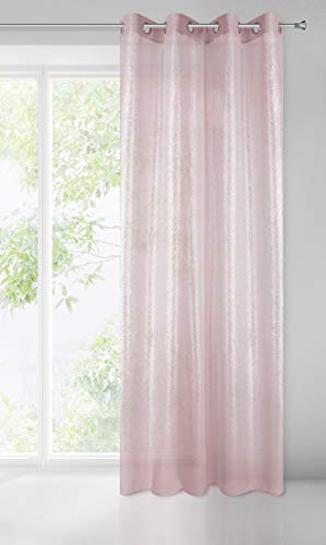 Eurofirany slät metalliska prickar transparent tryck mönster matt 8 öljetter mjuka gardiner moderna enkla sovrum vardagsrum, rosa + silver, 140 x 250 cm