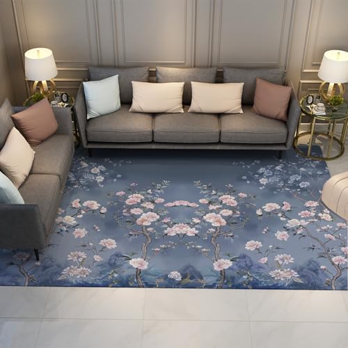 HOBBOY Tunna mattor blå och rosa blommor matta för vardagsrum sovrum vintage blommig matta alla årstider heminredning dörrmatta tvättbar 240 x 300 cm