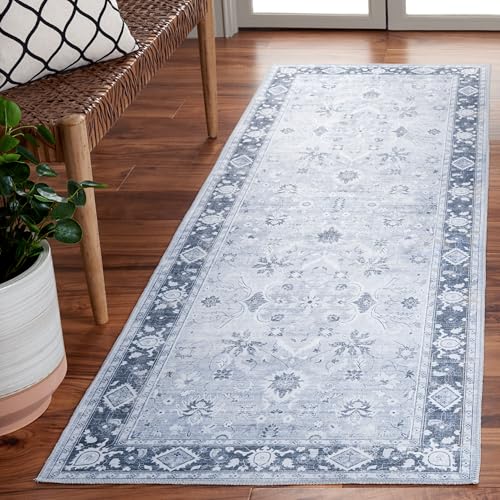Safavieh Distressed matta för maskintvättbar och halkfri – perfekt för frekvent trafik – Arizona Collection, kort lugg, grå och elfenben, 240 x 300 cm