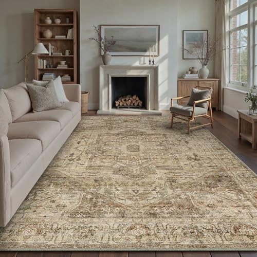 HUGEAR Vintage Vardagsrum Matta Stor Taupe Mattor 240x300cm Tvättbar Halkfri Golvmatta Sovrum Matsal Kontor Utomhus Barnrum Balkong Carpet Rug Mjuk Kort Lugg