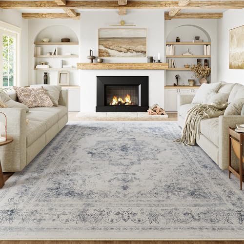 HUGEAR Vintage Vardagsrum Matta Stor Blå Mattor 240x300cm Tvättbar Halkfri Golvmatta Sovrum Matsal Kontor Utomhus Barnrum Balkong Carpet Rug Mjuk Kort Lugg