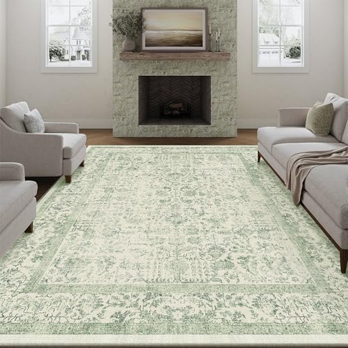 HUGEAR Vintage Vardagsrum Matta Stor Grön Mattor 240x300cm Tvättbar Halkfri Golvmatta Sovrum Matsal Kontor Utomhus Barnrum Balkong Carpet Rug Mjuk Kort Lugg