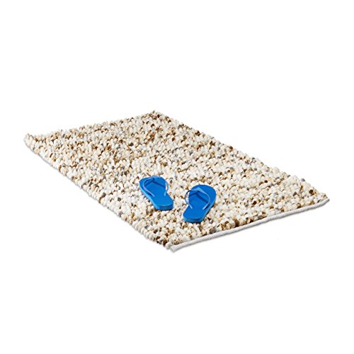 Relaxdays POPPY Badmatta, mjuk hög matta med nubbar, halkfri badrumsmatta, 70 x 120 cm, handvävd, grädde