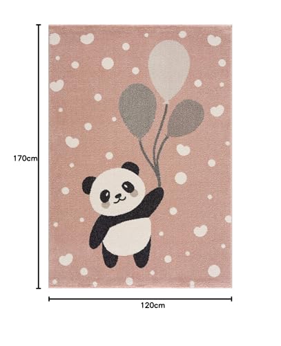 Matta för barnrum – barnrumsmatta flicka, björn, panda, hjärta – ljusrosa – storlek: 120 x 170 cm)