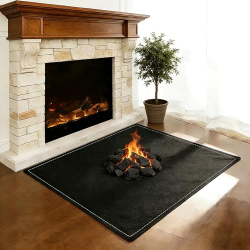 FLASLD Brandsäker inomhus öppen spis, matta, utomhus, flambeständig dyna i glasfiber för hjärta och skorgen, glansskyddsmatta för öppen spis (svart, 63 × 99 cm)
