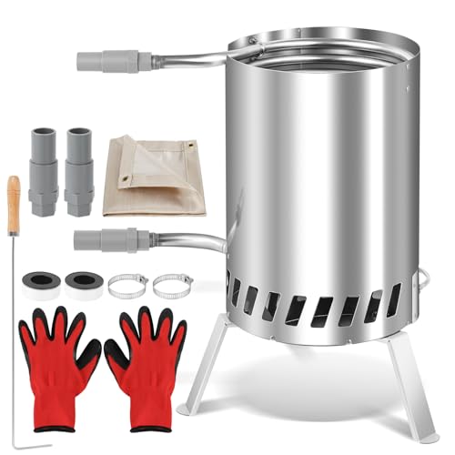 Jopassy Ved, poolvärmare, 100 % rostfritt stål poolvärmare med eld och värmespiral, upp till 300 °C, poolvärmare Ø 32/38 mm anslutning, med brandsäker matta och bricka