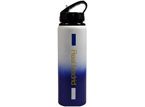 Hy-Pro Officiellt licensierad Real Madrid CF aluminiumflaska – 750 ml, bleknings design, matta, integrerat hopfällbart sugrör, läckagesäker, lätt, bra fotboll presentidé