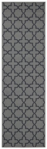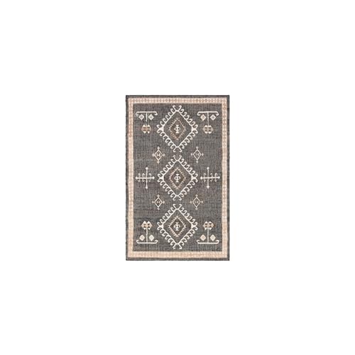 SAFAVIEH Geometrisk matta för inomhus- och utomhusbruk – Amherst Collection, kort lugg, antracit och elfenben, 76 x 122 cm