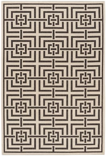 Safavieh geometrisk matta för inomhus och utomhus – strandhus kollektion, kort lugg, i krämfärg och brun, 91 x 152 cm