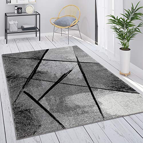 Surya Lubbock geometrisk matta – modern matta i vardagsrum, matsal, sovrum – mjuk abstrakt bohomatta, matta med kort lugg för enkel skötsel – matta stor 152 x 213 cm i grå