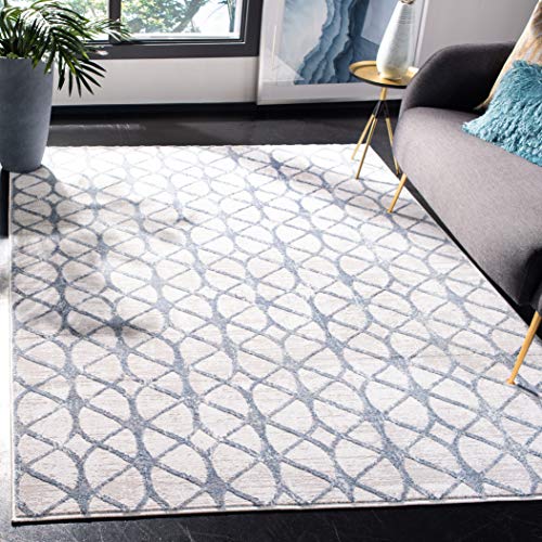 Safavieh Geometrisk matta för vardagsrum, matsal, sovrum - Amelia Collection, kort lugg, grå och blå, 76 x 183 cm