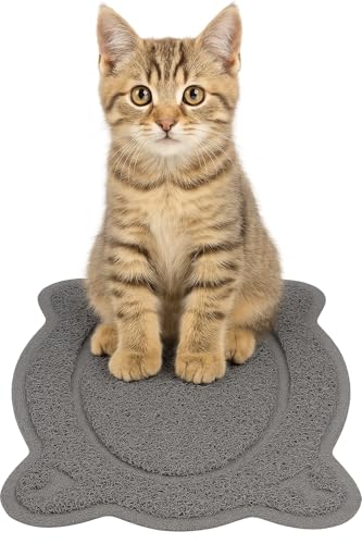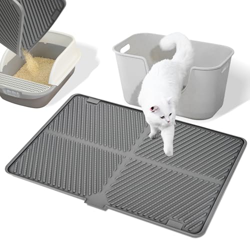 LUOJINYI Matta för kattlåda, 61 × 38 cm silikonkattsandsmatta för kattlåda för att fånga kattströ, strukturerat kattlådeunderlag, vattentätt, halkfritt och lätt att rengöra, grå