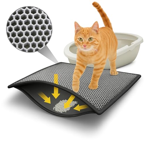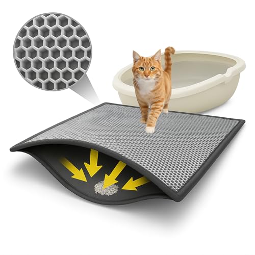 BYPET Matta för kattlåda, kattströ, matta, kattlåda, underlägg, bikakedesign, kattlåda, mattor, vattentät, dubbla lager, design, bivaxmatta (grå 4060)