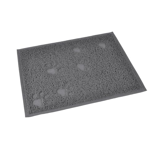 lionto Kattsandsmatta i robust PVC, 40x60 cm, lätt att rengöra matta för kattlåda med halkfri undersida, håller hemmet rent och är skonsam mot kattens tassar, grå
