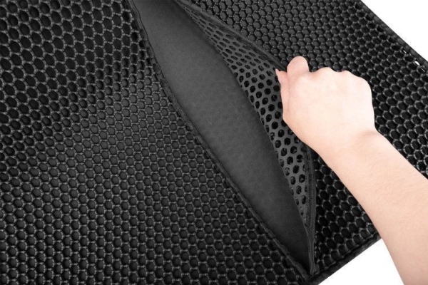 Pieviev Kattlåda matta, kattsand matta kattlåda underlägg vaxkaka design kattlåda mattor vattentät dubbla lager design bikupa matta, svart, 76 cm x 61 cm