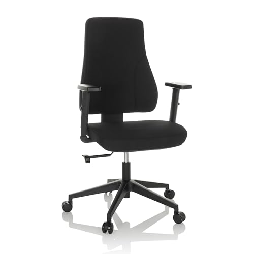 hjh OFFICE 810015 professionell kontorsstol MATHES - matta tyg svart snurrstol ergonomisk, ryggstöd och armstöd justerbar höjd