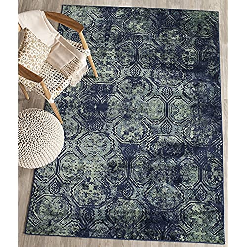 Safavieh Vintage inspirerad matta, VTG197, vävd mjuk viskosfiber, marinblå/flerfärgad 90 x 150 cm