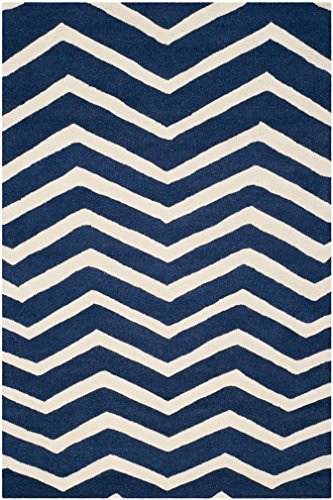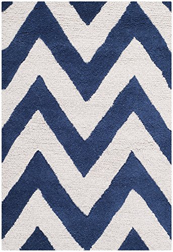Safavieh Chevron-ränder matta, CAM714, handvävd ylle, marinblå/alfenben, 120 x 180 cm