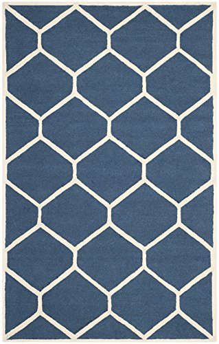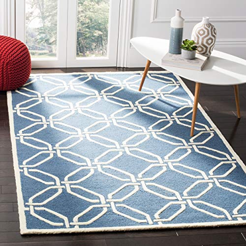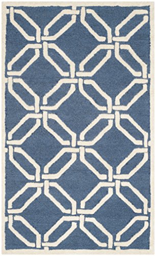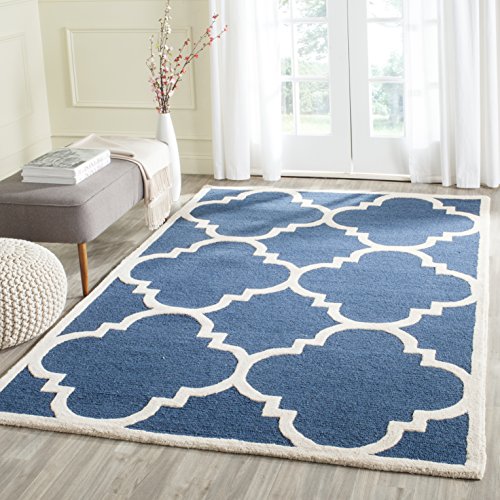 Safavieh modern handtuftad rektangulär matta, Cambridge-kollektion, CAM139, i marinblå/elfenben, 91 x 152 cm för vardagsrum, sovrum eller valfritt inomhusutrymme