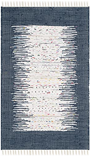 Safavieh modern platt vävd rektangulär matta, Montauk-kollektion, MTK711, i elfenben/marinblå, 76 x 122 cm för vardagsrum, sovrum eller valfritt inomhusutrymme