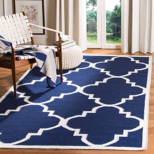 Safavieh Alameda Dhurrie handvävd matta, platt vävd ull och bomullsmatta i marinblå/elfenben, 152 x 243 cm