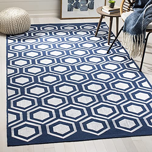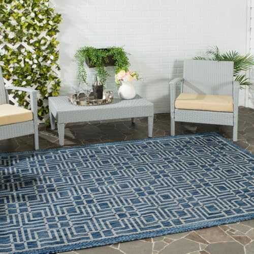 Safavieh samtida inomhus-/utomhusvävd rektangulär matta, gårdskollektion, CY8467, i marinblå/grå, 122 x 170 cm för trädgård, uteplats eller valfritt utomhusutrymme