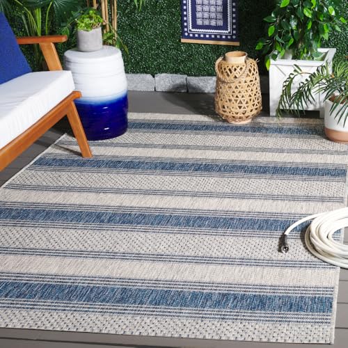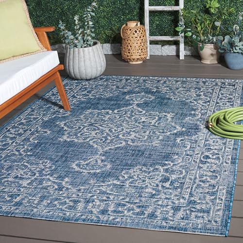 Safavieh samtida inomhus-/utomhusvävd rektangulär matta, gårdskollektion, CY8464, i grå/marinblå, 122 x 170 cm för trädgård, uteplats eller valfritt utomhusutrymme