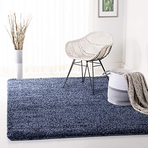 SAFAVIEH lurvig matta för vardagsrum, matsal, sovrum – Milan Shag-kollektion, hög lugg, i marinblå, 122 x 183 cm