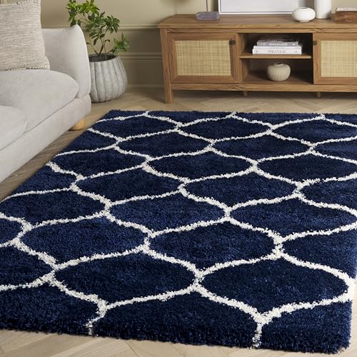 SAFAVIEH Lurvig matta för vardagsrum, matsal, sovrum – Hudson Shag-kollektion, hög lugg, i marinblå och elfenben, 122 x 183 cm