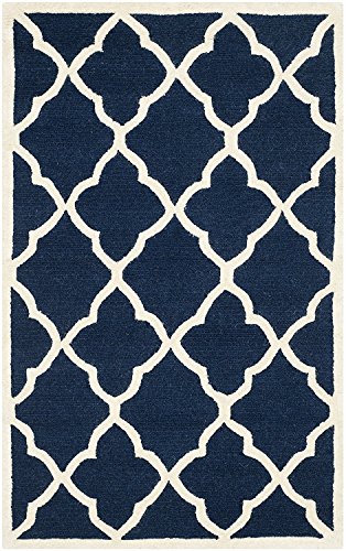 Safavieh modern handtuftad rektangulär matta, Cambridge-kollektion, CAM140, i marinblå/elfenben, 91 x 152 cm för vardagsrum, sovrum eller valfritt inomhusutrymme