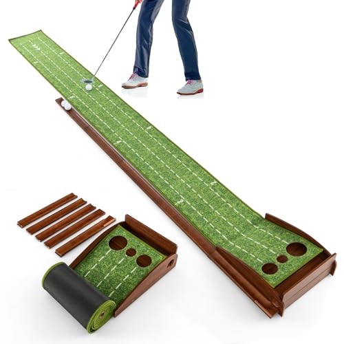 HUAEN Golf puttning grön, matta för inomhus, golfputtning matt med bollretur och 3 hål, golfträning och övningsutrustning hemma eller på kontoret, golfgåvor tillbehör för män ..