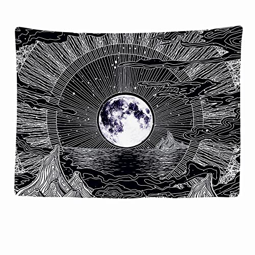 Ulticool, heminredning för väggupphängning, måne, stjärnor, moln, bohemisk, psykedelisk, 200 x 150 cm, väggmålningar, matta, väggdekorationer, dekorativa väggmålningar för rum, sovrum och vardagsrum