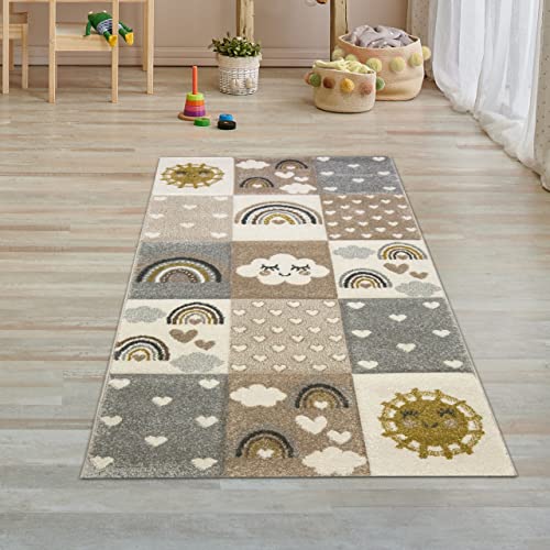 TT Home Barnens Matta Barnrum Modernt Regnbåge Moln Djurmotiv Färgrik, Färg:Grädde3, Storlek:120x160 cm
