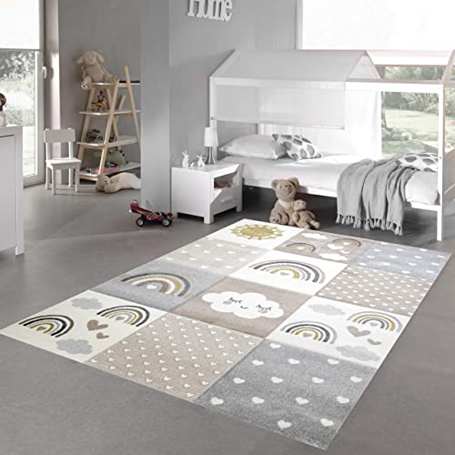 Hanse Home Adventures Barnmatta – regnbåge moln mönster matta pojke flicka för barnrum, lekrum, ungdomsrum, vardagsrum – creme, 160 x 235 cm