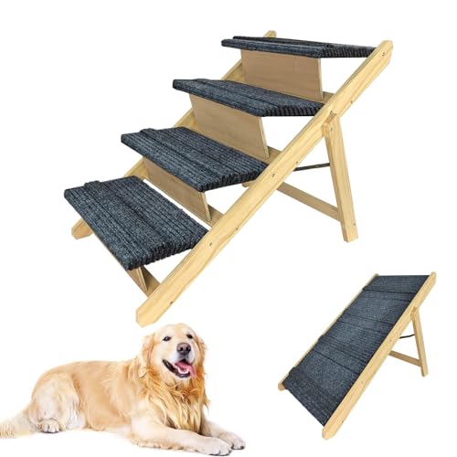 LZQ HAG7511B) 2-i-1 hundtrappa hundrampa bil hopfällbar för små hundar och katter, bärbar hundstege husdjurstrappa av trä med halkfri matta för säng, soffa, upp till 80 kg