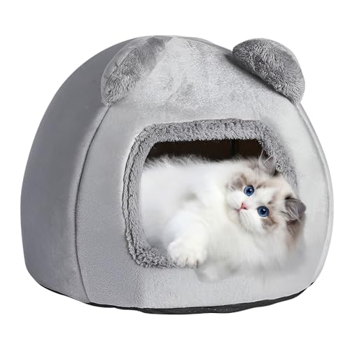 SKIKHN Kattgrotta kattsäng tvättbar, 40 cm katthus gosig grotta med halkskydd golv och avtagbar matta, husdjurssäng mjuk komfort, säng, varm, för katter under 5 kg, små hundar sova grå