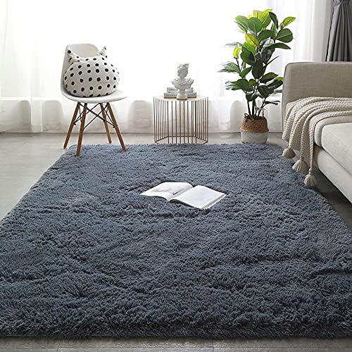 Stora mattor för vardagsrummet, mjuk matta med lugg, fuskpälsmattor, ultramjuk lurvig matta, modern matta, halkfria säkra mattor för vardagsrum, sovrum, soffa, barnkammarmattor, 200 x 300 cm, blå