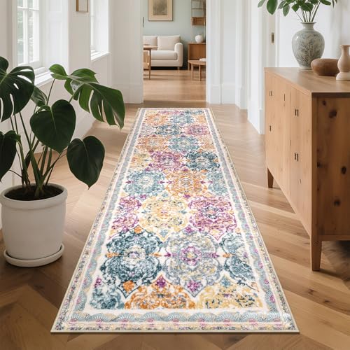 Enyhom Gångmatta, extra lång dörrmatta för entré, tvättbar, lurvig, mjuk matta för tvättstuga, halkfri köksmatta i vintage-/bohemiskstil för badrum, entré, sovrum eller trappa, 75 x 305 cm, färgglad