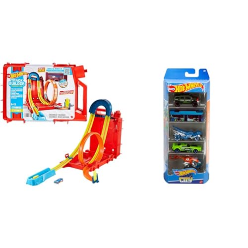 Hot Wheels HDX78 - Track Builder Unlimited petrol can stuntbox, från 6 år & Hot Wheels 1806 - Presentförpackning, 5 fordon vardera, slumpmässiga bilar/fordonsmodeller, 5-pack