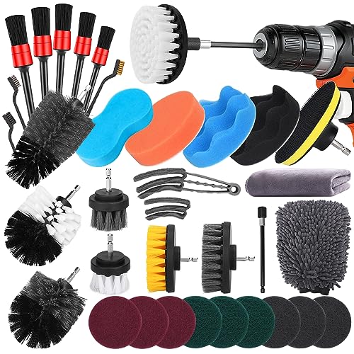 37 stycken borstfästen borrmaskinsset, Power Scrubber borstesats med peeling Pad svamp poleringskuddar för badrum dusch, mattrengöring, murbruk och kakelrengöring