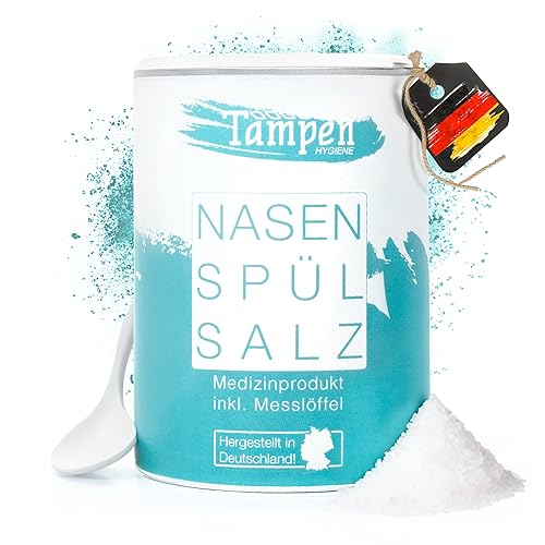Tampen nasal dusch set med 120x nasalt sköljsalt (300g) och måttsked (1g) · 3 fästen för vuxna och barn · Premium nasal sköljning och nasal rengöring